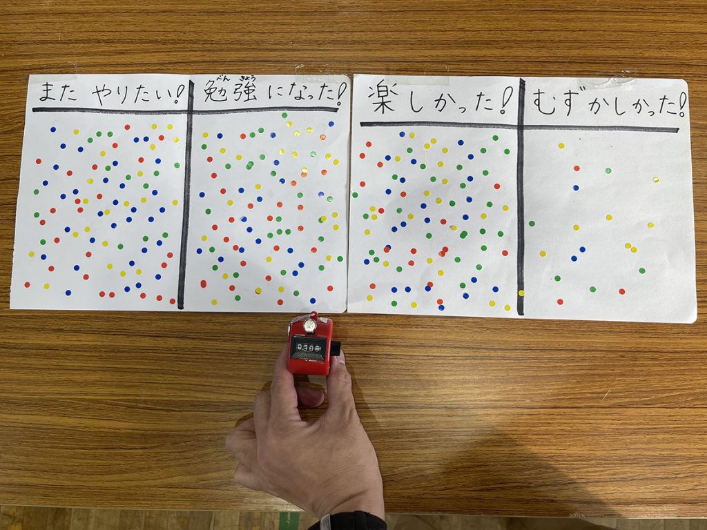 一番上の写真は、減災迷路を体験した感想を生徒さん達に選択してもらいました。