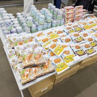 管理組合の方が作ってくださるあったかい豚汁をいただきながら、皆様に防災用品をご覧いただきました。